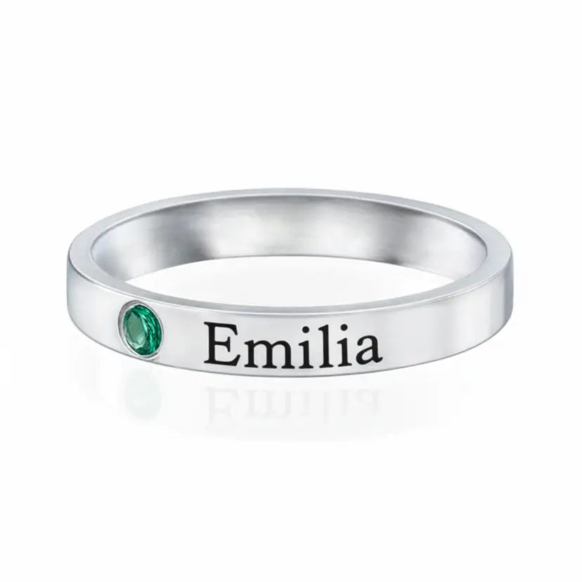 Bague empilable avec pierre de naissance et prénom
