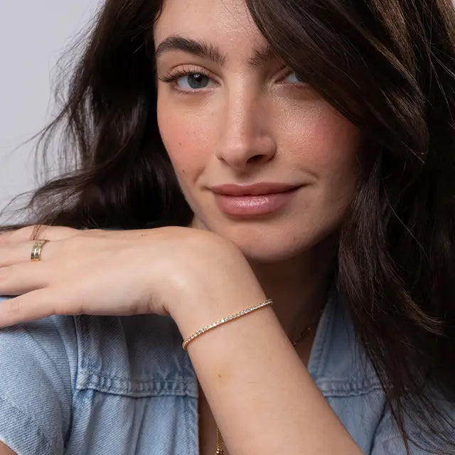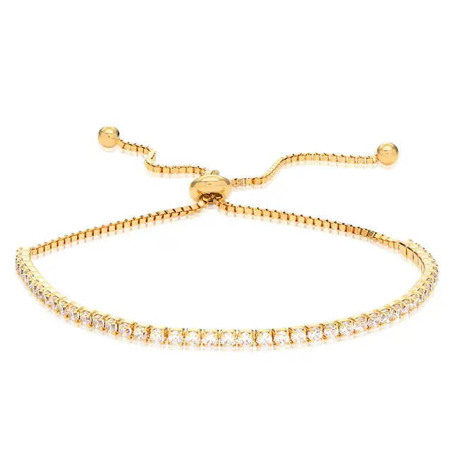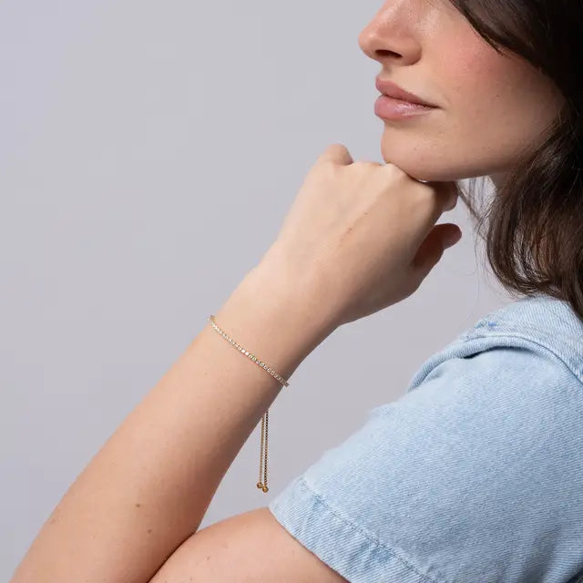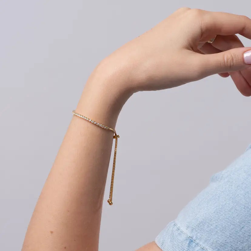 Rehaussez votre style festif avec le bracelet tennis ajustable Holly, un bijou à couper le souffle, orné de zircons cubiques scintillants. Son système d'ajustement permet de le superposer à merveille, apportant une touche d'élégance à toutes vos tenues. Célébrez les fêtes avec une sophistication intemporelle et tout l'éclat qui va avec.