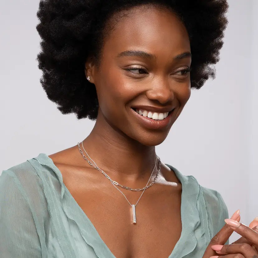 • Avec un pendentif barre 3D vertical personnalisable avec jusqu'à quatre gravures.