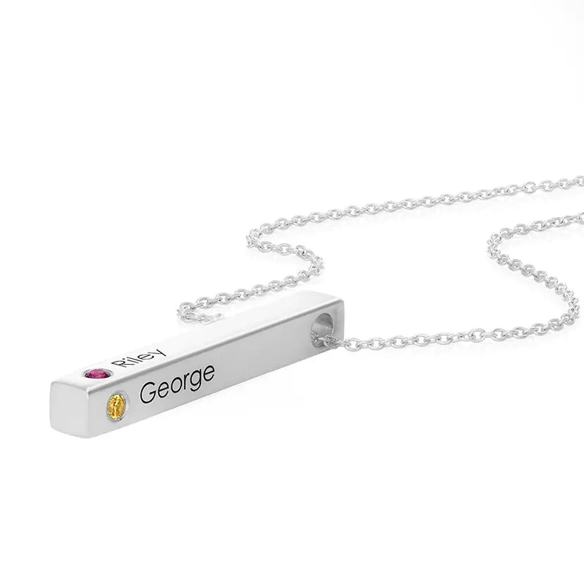 Collier 3D Pierres de Naissance avec Prénoms Personnalisés