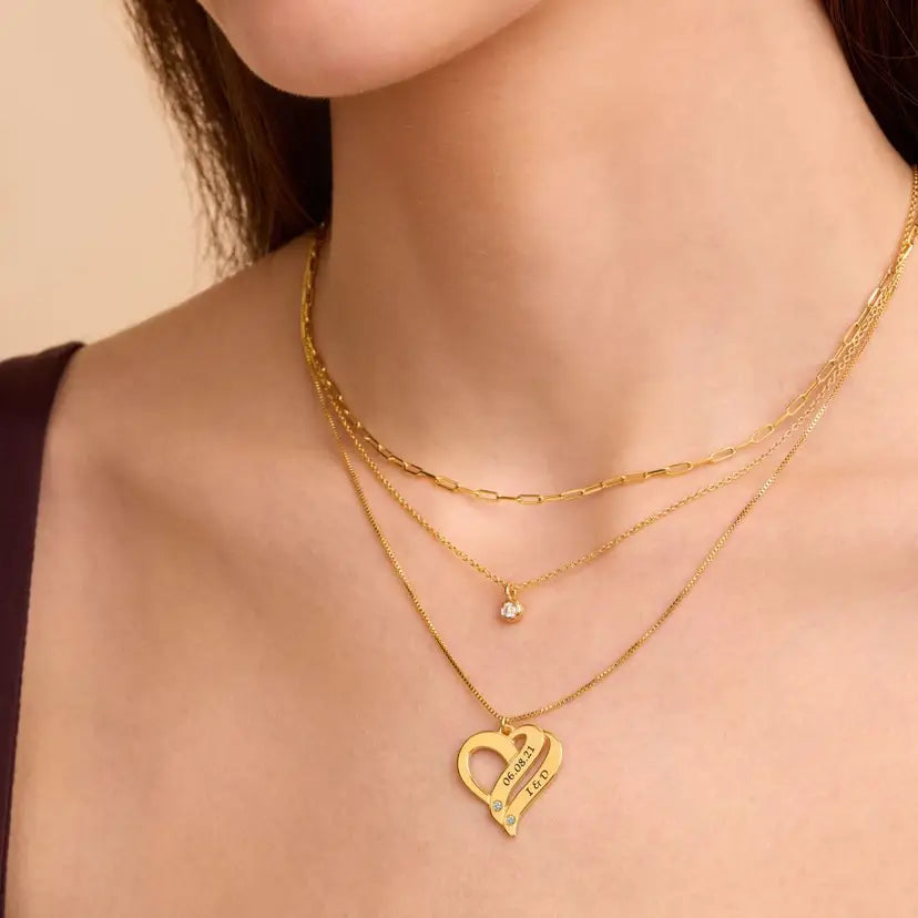 Collier Deux Cœurs pour Toujours Personnalisés avec Diamants