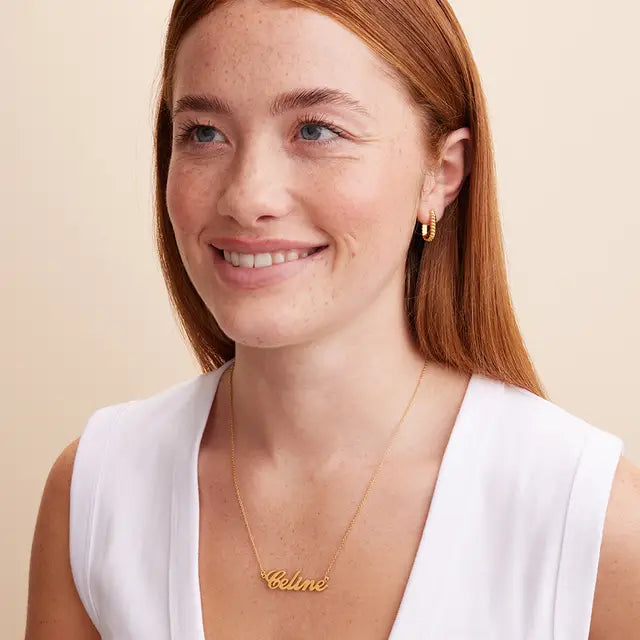 Voici le pendentif classique avec prénom ! Notre collier classique avec prénom met en valeur n'importe quel prénom ou mot significatif grâce à une magnifique écriture cursive fluide avec des fioritures parfaites qui accentuent les lettres majuscules. Le style idéal pour celles qui aiment les vêtements et les bijoux élégants et sophistiqués. Rehaussez votre décolleté avec un magnifique collier personnalisé, un accessoire polyvalent qui rehausse sans effort n'importe quelle tenue, de la plus décontractée à la plus élégante. Portez ce collier prénom seul pour un look délicat ou associez-le à d'autres colliers pour un look tendance et personnalisé qui met en valeur votre style unique. Procurez-vous dès maintenant votre collier prénom !
